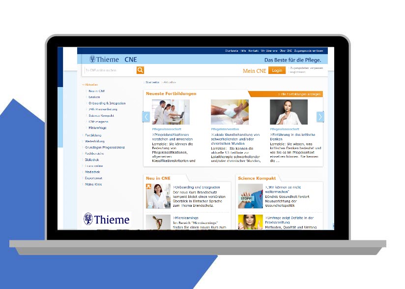 CNE (Certified Nursing Edukation) ist ein innovatives, multimediales Fortbildungskonzept für die Gesundheits- und Krankenpflege, welches die Thieme Gruppe gemeinsam mit dem Deutschen Pflegerat e.V. entwickelt hat. Derzeit qualifizieren über 1.000 Einrichtungen ihre Pflegekräfte mit CNE, das kostenpflichtig über Lizenzen erworben wird.