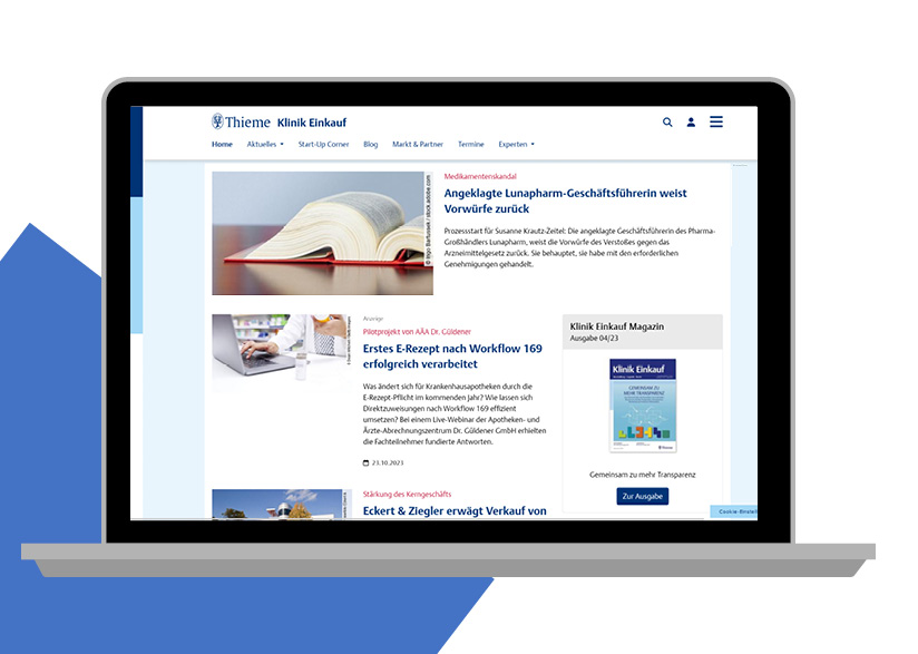 www.klinik-einkauf.de widmet sich als erstes Online-Portal vollumfänglich dem Thema Klinikeinkauf. Zusammen mit Experten bietet www.klinik-einkauf.de aktuelle Meldungen und Berichte aus den Themenbereichen Einkauf, Beschaffung und Logistik. Gleichzeitig ist Klinik Einkauf eine Plattform, die zum Austausch einlädt. Über den Blog bleiben Klinikeinkäufer miteinander in Kontakt und erfahren, was ihre Kollegen gerade bewegt. Ein Veranstaltungskalender sowie die Verknüpfung mit Social-Media-Kanälen machen Klinik Einkauf damit zu einer umfassenden Informations- und Austauschplattform für alle interessierten Klinikeinkäufer.